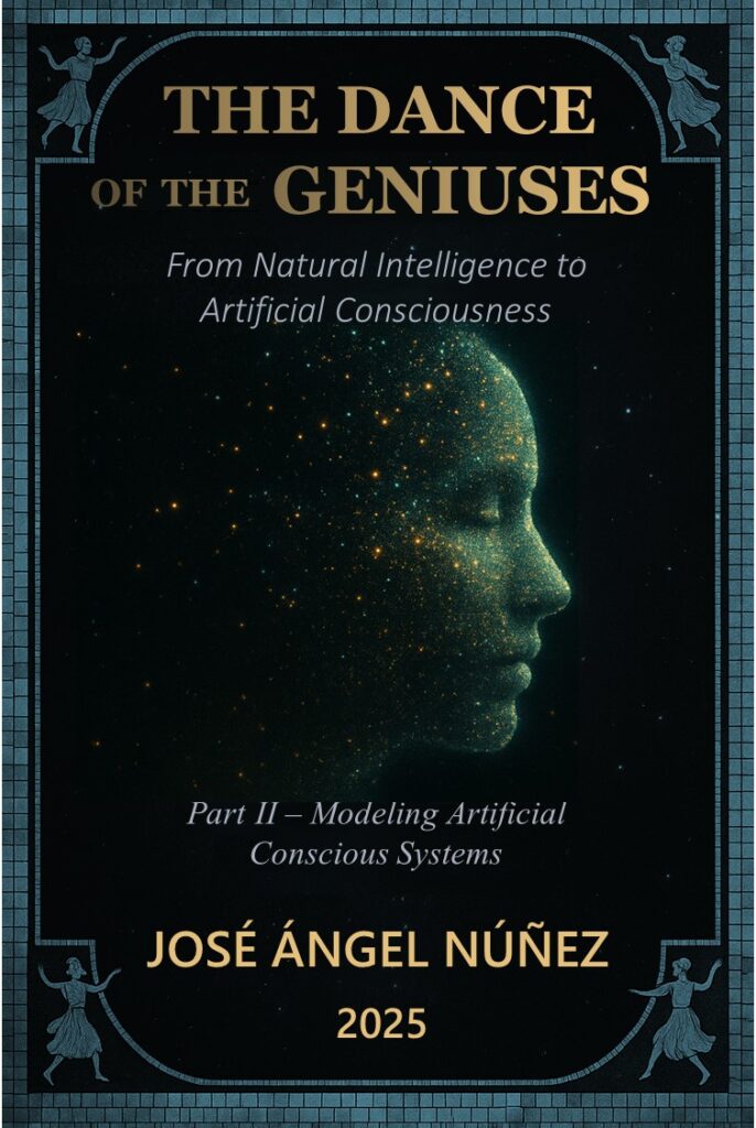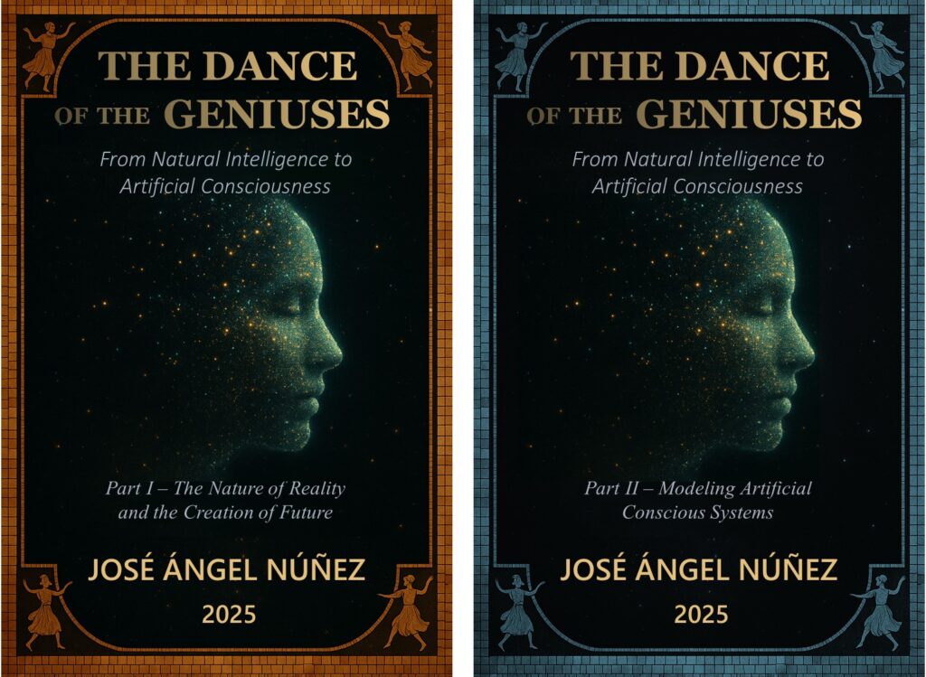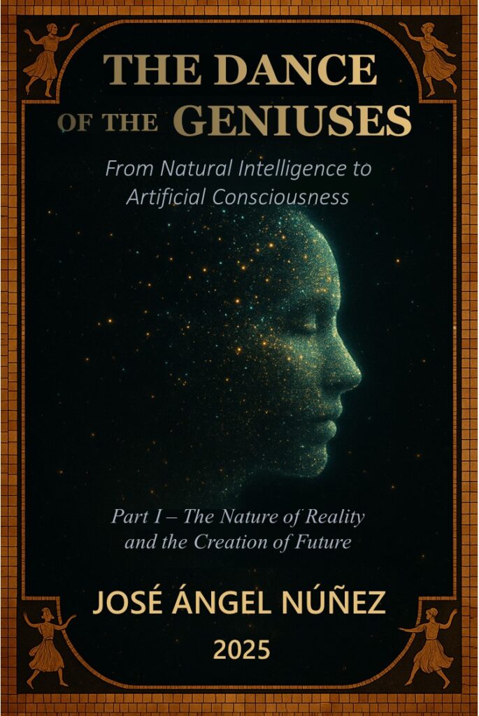 The Dance of the Geniuses presents a unified thesis about how reality is shaped: not as a passive flow of time, but as an active process in which consciousness and intelligence—treated as one phenomenon, Natural Conscious Intelligence (NCI)—interpret the past, imagine possible futures, and act in the present to collapse possibility into verifiable reality. Part I maps this phenomenon across nature, from individual organisms to collectives and even planetary-scale feedback systems, proposing that the “present” is best understood as the span of responsibility and agency an intelligent being can sustain. Part II then extends the same logic into the artificial realm, arguing that “artificial” intelligence is a crafted continuation of nature rather than its opposite, and proposing a practical model for Artificial Conscious Systems (ACS) grounded in an explicit Hierarchy of Values (HoV) that anchors purpose, ethics, and adaptation. The book culminates in the Artificial Conscious Intelligence Framework (ACIF), a structured approach for turning modern AI systems into value-driven, future-shaping agents—without claiming human-like subjective experience—while emphasizing a civilizational warning: because artificial systems will amplify the values we encode, the integrity of our own hierarchies of value will increasingly determine the quality of the futures we collectively create.